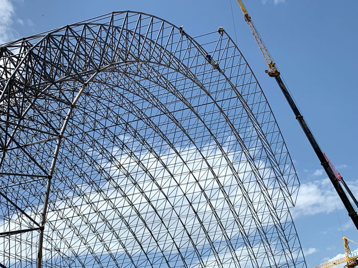 (2)网架加工前应对现场尺寸进行复测,确认无误后方可进行加工、安装;网架制作、运输、安装应遵守《空间网格结构技术规程》JGJ7-2010、《钢网架池州螺栓球节点》JG/T 10-2009、《钢网架池州螺栓球节点用高强度螺栓》 GB/T 16939-2016、《池州钢结构池州工程池州施工规范》 GB50755-2012、《池州钢结构池州工程施工质量验收标准》 GB50205-2020。